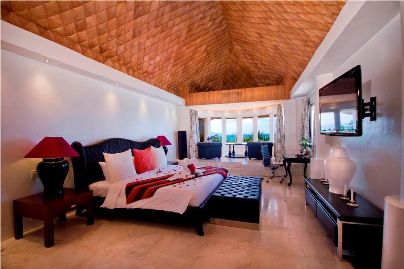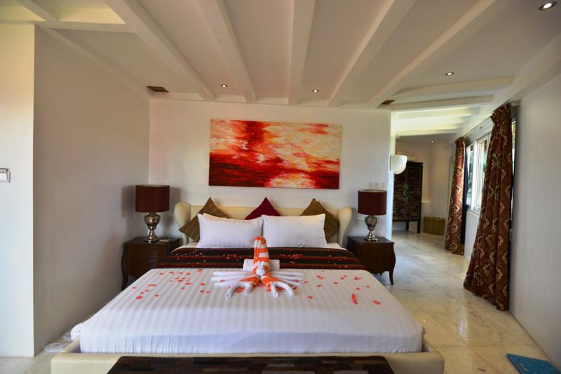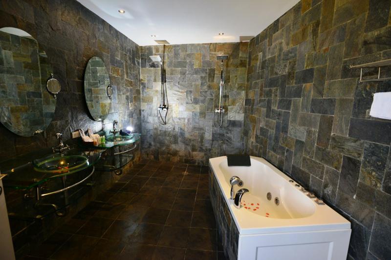 This exclusive Presidential suite is a combination of luxury and comfort. Experience to live like Kings and Queens with its elegant interior decoration. Guests will be welcomed by a bottle of champagne and a butler. It has a large living room with luxurious sofas and chairs, a 50 inch flat screen television, a bar and a dining table that can seat up to 10 guests. The separate bedroom is equipped with one king-size bed, a 50 inch flat screen television, a desk and a safety deposit box. Its bathroom features a rain shower and a Jacuzzi with an unforgettable view of the island.