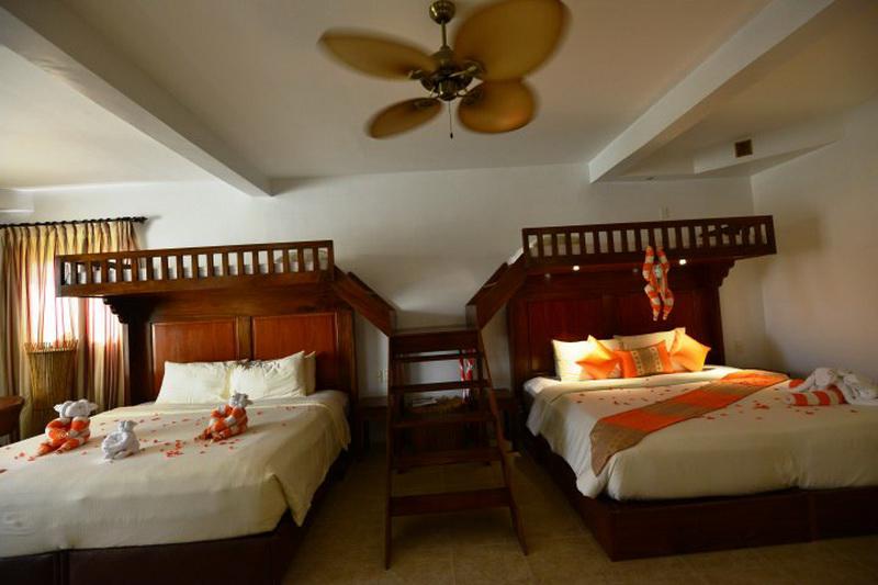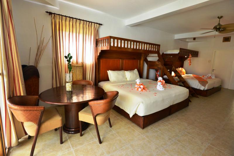 The one of its kind 70 square meters room in this 5 Star resort. Perfectly situated in a prime spot in Station 1. Guests can wake up and step out on the beach. The Casita Family suite is ideal for 4 people, equipped with 2 king-size beds, or 4 single beds. a patio with a seaview, 2 flat screen televisions, toiletries, safety deposit box, a/c and a huge private bathroom with Jacuzzi and rain shower. Guests have access to free Wi-Fi and the gym.