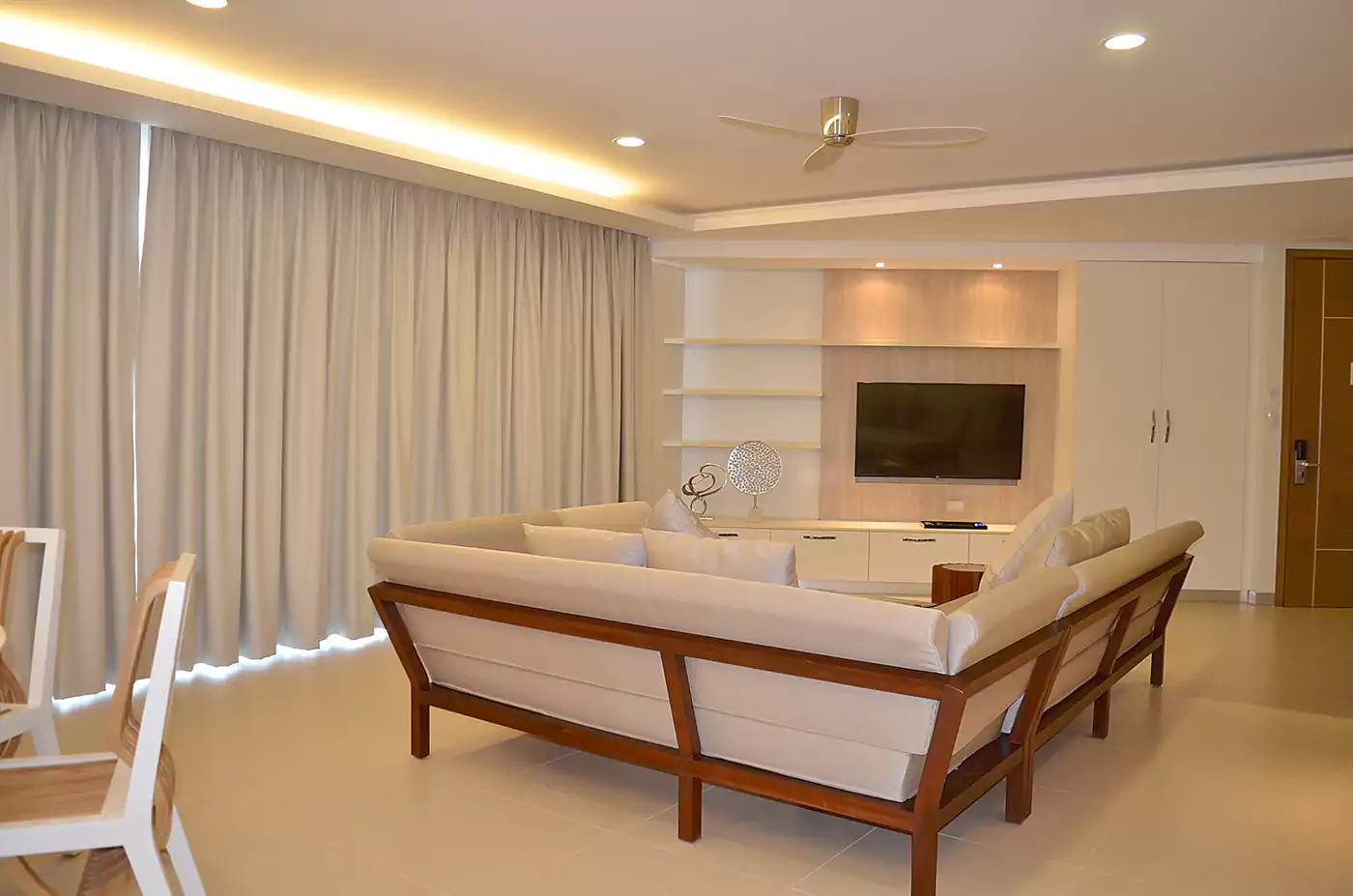 Experience the perfect blend of comfort and functionality in this beautifully designed suite. The open living room serves as the central hub, offering a spacious sofa bed, cozy seating area, wide-screen cable TV, dedicated workspace, and reliable Wi-Fi—ideal for both leisure and productivity. The master bedroom provides a luxurious retreat with a plush king-sized bed and modern air conditioning, while the second bedroom offers a welcoming queen-sized bed, cable TV, and the same comfort-focused design. Completing the suite is a private master bathroom and well-appointed amenities, ensuring every stay is both relaxing and convenient. Whether you’re here for work, rest, or quality time with loved ones, the whole suite is tailored to meet your needs.